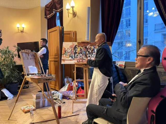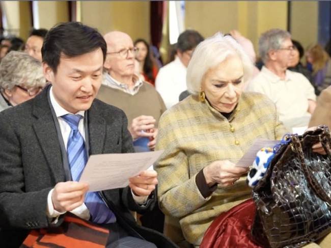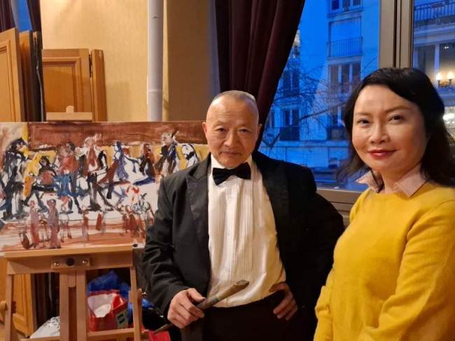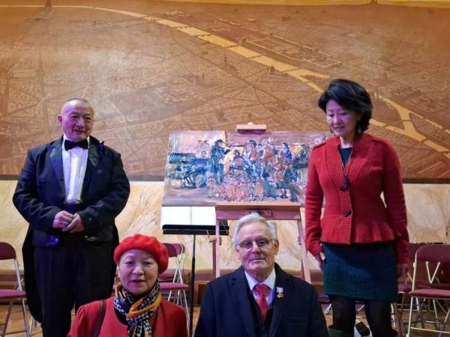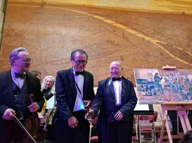 巴黎 15区区长 Philippe GOUJON 菲利普.顾戎 先生出席音乐会并发表中国马年新年致辞,马来西亚侨民协会前任会长叶俊聪先生代表华人用双语致辞。旅法艺术家沈斯先生,现场作画