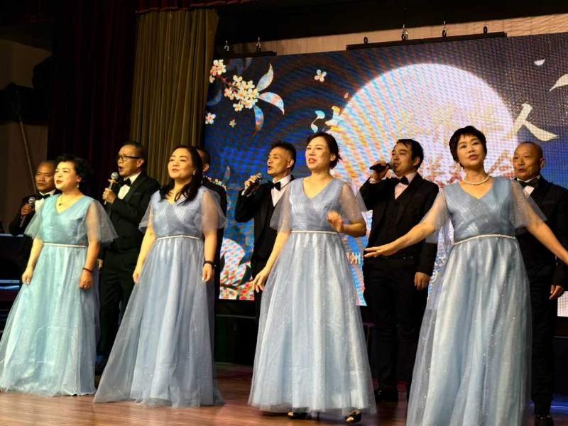 文艺联欢会共表演了20个精彩的文艺节目,有合唱,独唱,男女对唱,太极剑,粤剧,太极扇,还有现代芭蕾